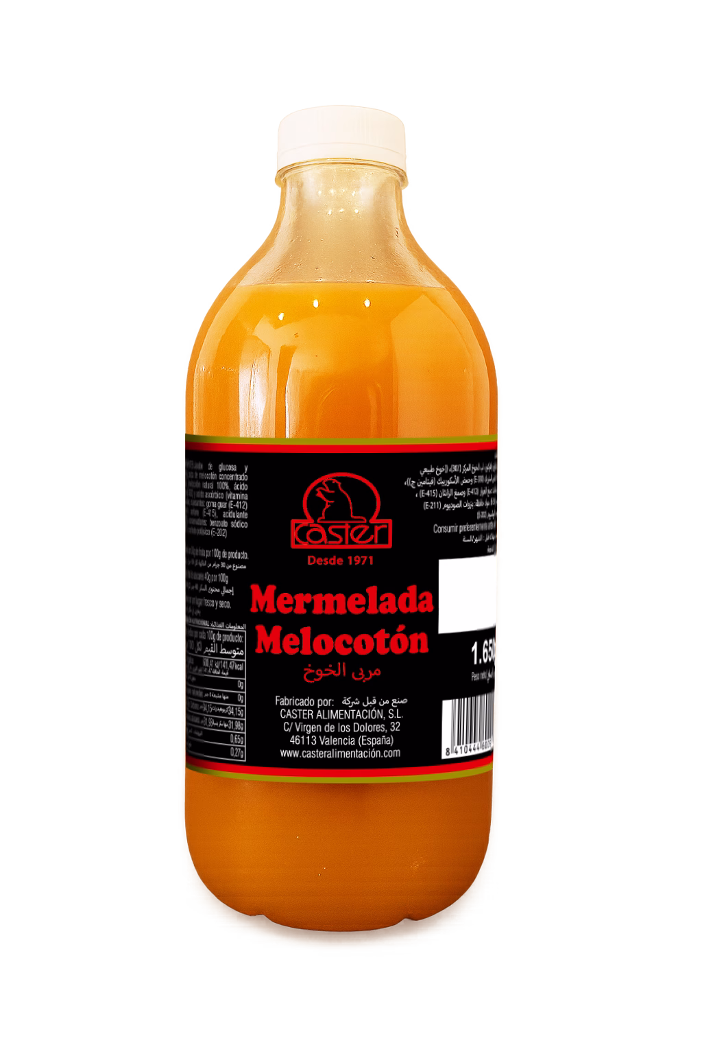 Peach pulp concentrate (30.8%), glucose and fructose syrup, sugar, guar gum (E-412), acidulant (E-330), xanthan gum (E 415), sodium benzoate (E-211), potassium sorbate (E-202).