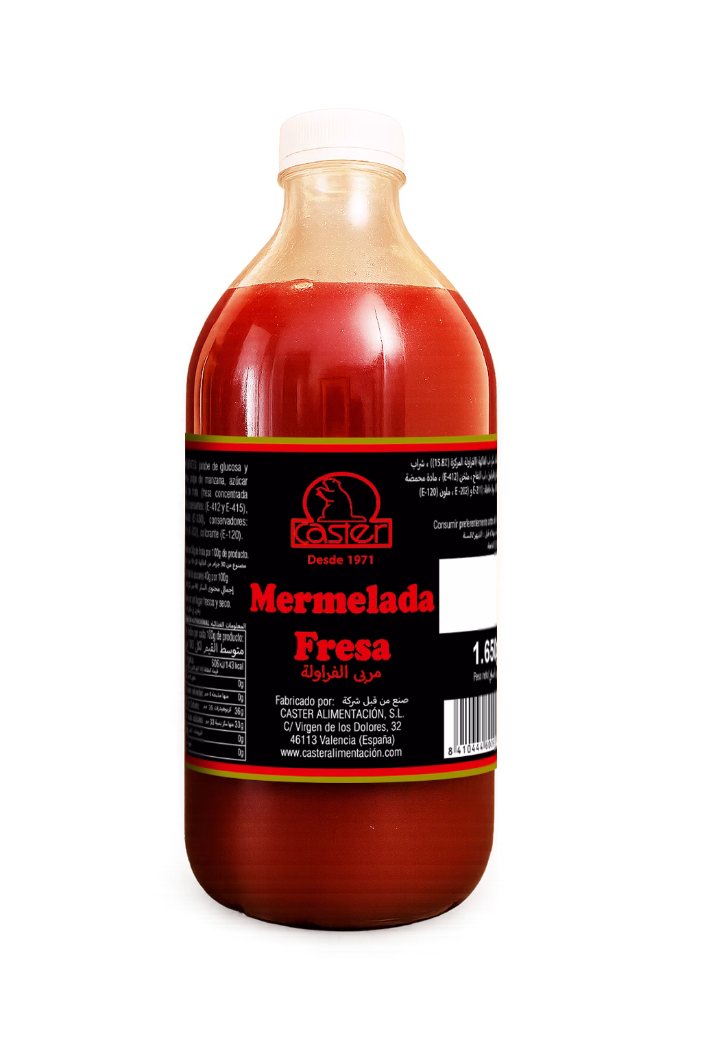 Glucose and fructose syrup, strawberry pulp (concentrated strawberry (15.5%)), sugar, apple pulp, guar gum (E-412), acidulant (E-330), xanthan gum (E 415), sodium benzoate (E-211), potassium sorbate (E-202), coloring agent E-120.