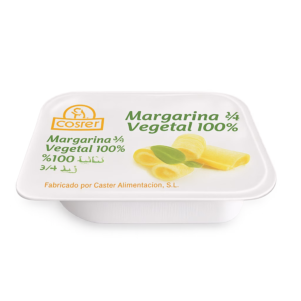 Aceites y grasas vegetales (palma, soja, coco, nabina, girasol, en proporción variable), agua, emulgente (E-471, lecitinas), sal (0,4%), acidulante (ácido cítrico), conservador (E-202), aromas, colorante (carotenos). Porcentaje de grasa 60%.