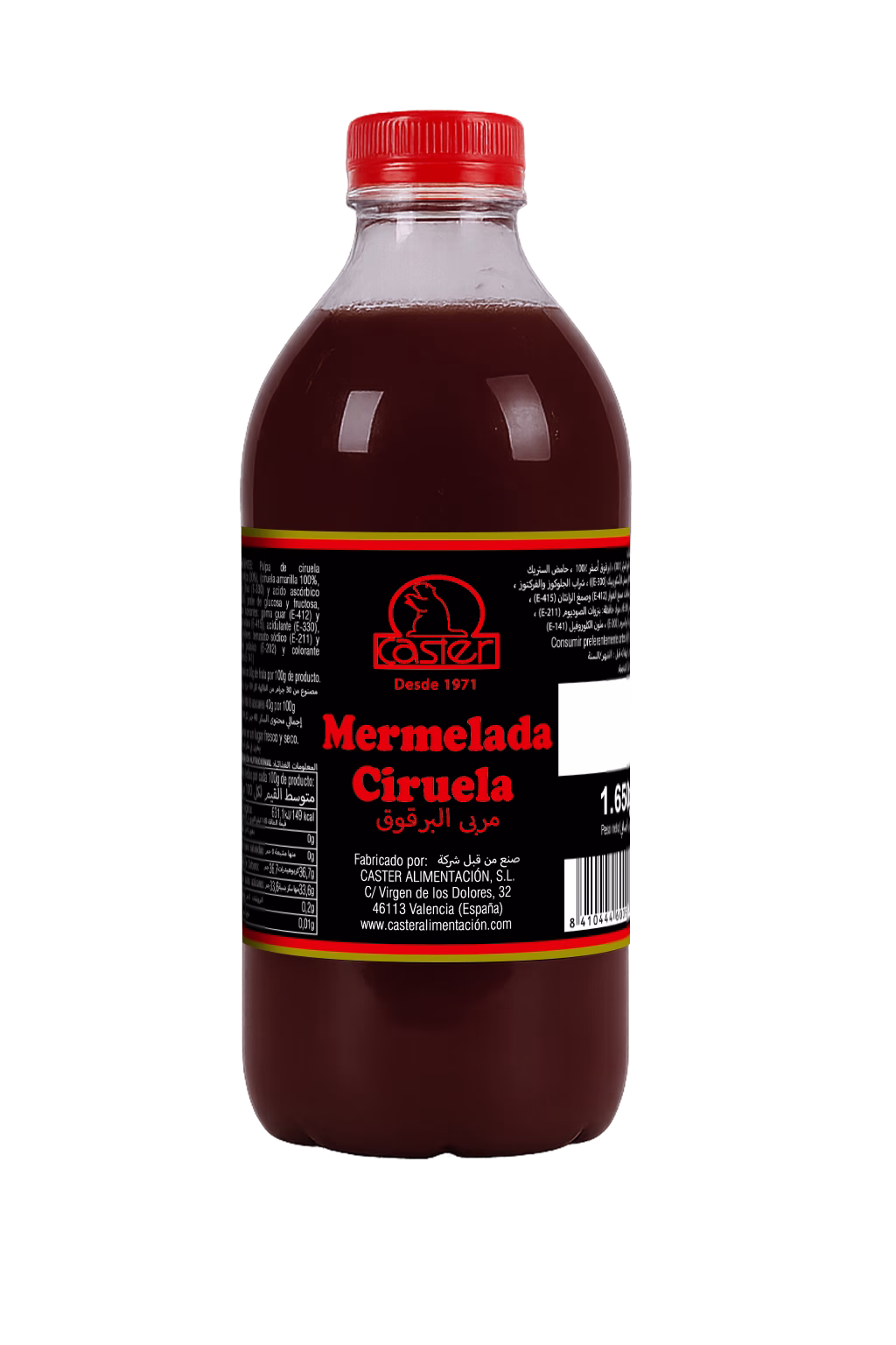 Pulpa de ciruela concentrada(34%) (ciruela amarilla 100%, ácido cítrico (E-330),y ácido ascórbico (E-300)), jarabe de glucosa y fructosa, azúcar, goma guar (E-412), acidulante (E-330),goma xantana (E-415),conservadores: benzoato sódico (E-211) y sorbato potásico (E-202) y colorante clorofila (E-141).