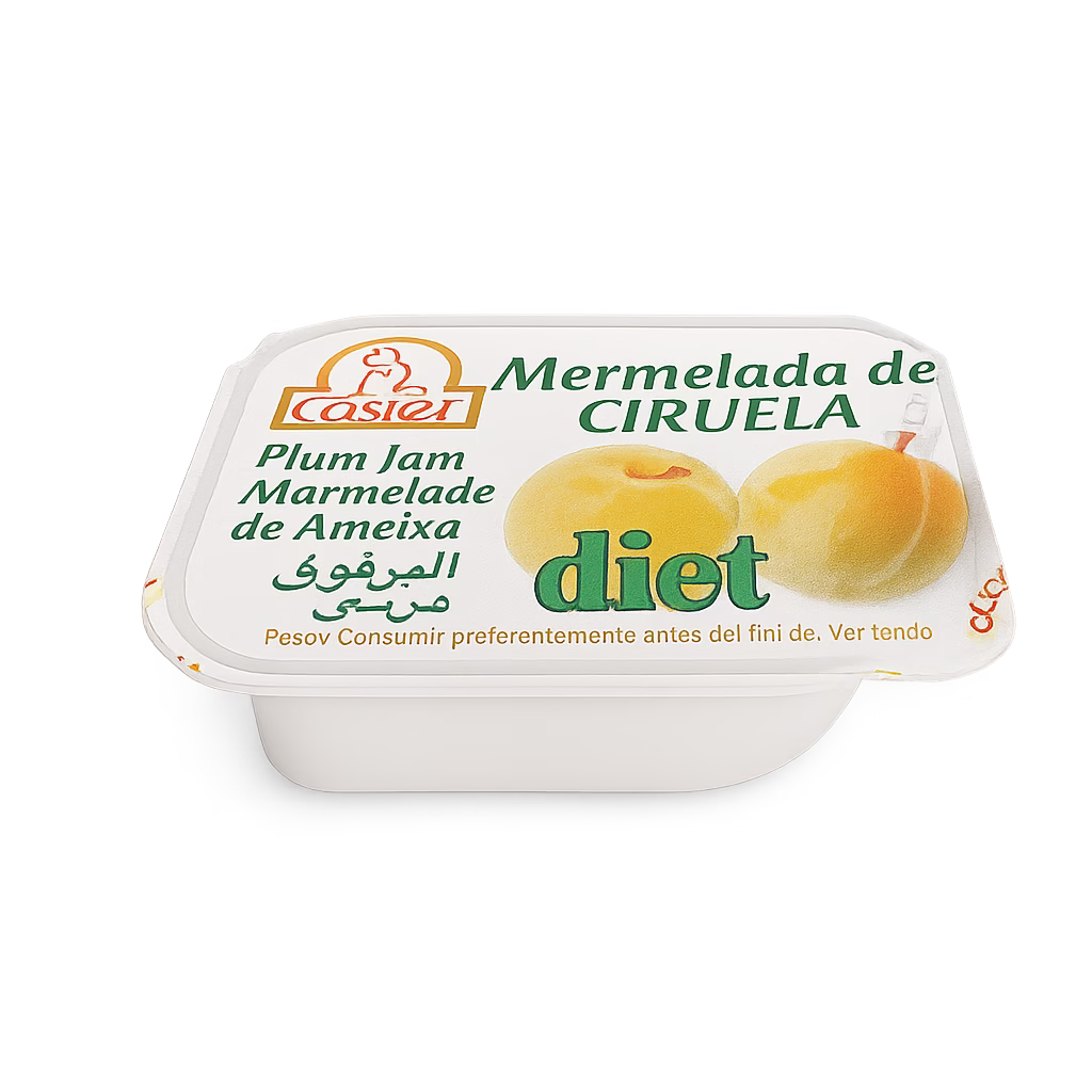 Sorbitol (38,9%), pulpa de ciruela concentrada (32%) (ciruela amarilla 100%, ácido citrico (E-330),y ácido ascórbico (E-300)), pulpa de manzana, goma guar (E-412), acidulante (E-330),goma xantana (E 415), benzoato sodico (E-211), acesulfame-K (E-950), sorbato potasico (E-202), colorante clorofila (E141).
